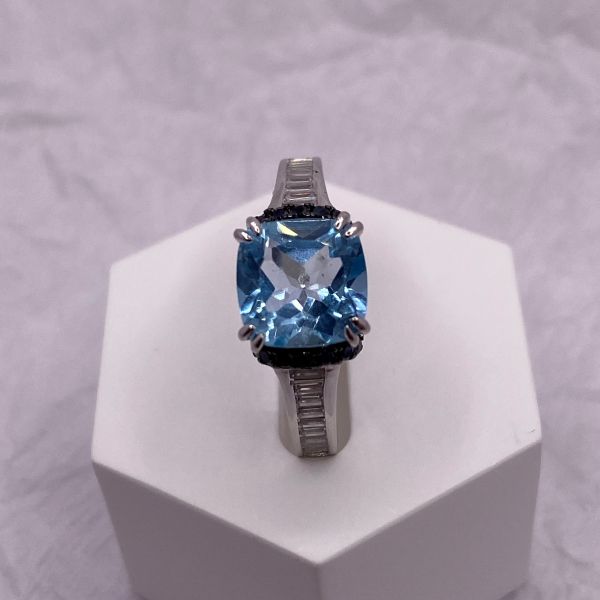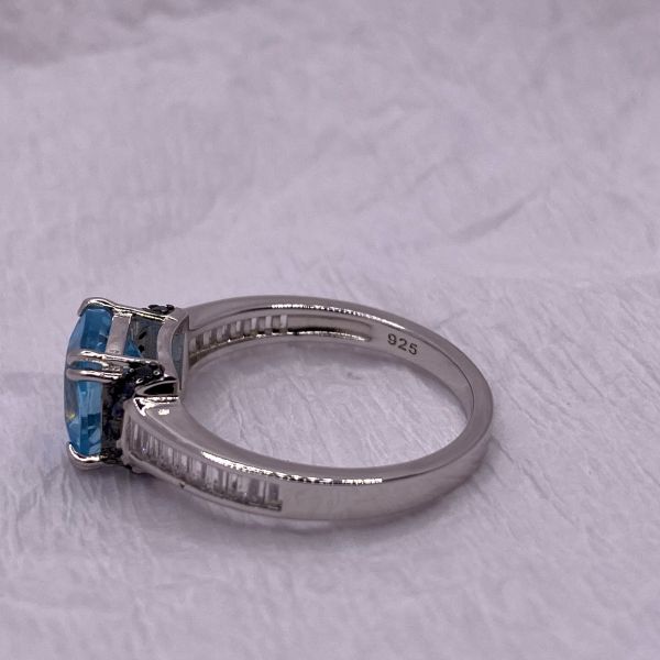 Blue Topaz and Black Spinel Ring