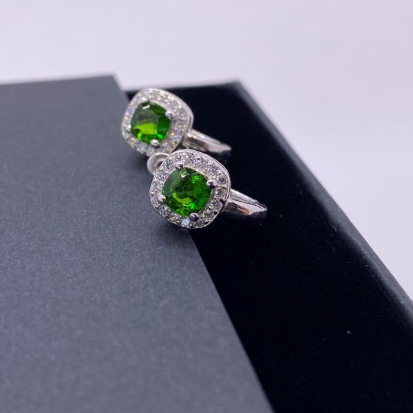 Chrome Diopside and Zirconia Earrings