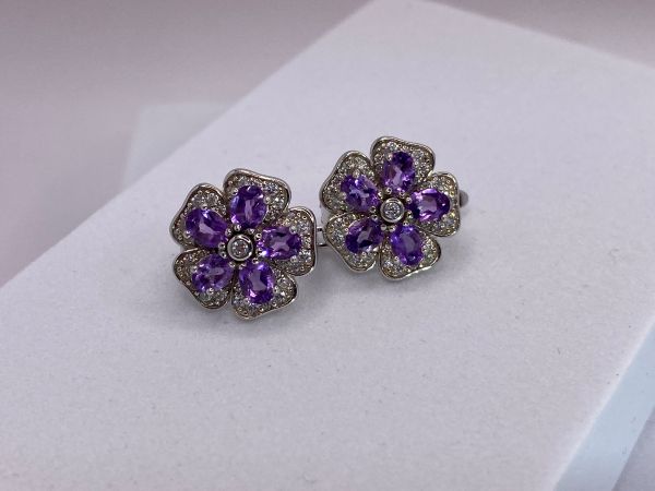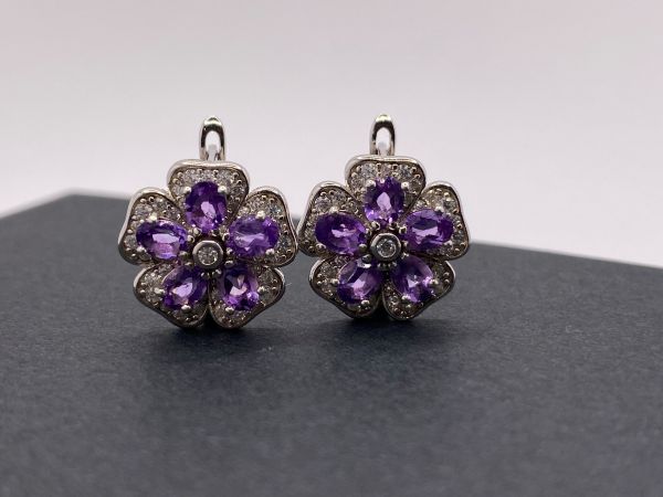 Natural Amethyst and Zirconia Earrings
