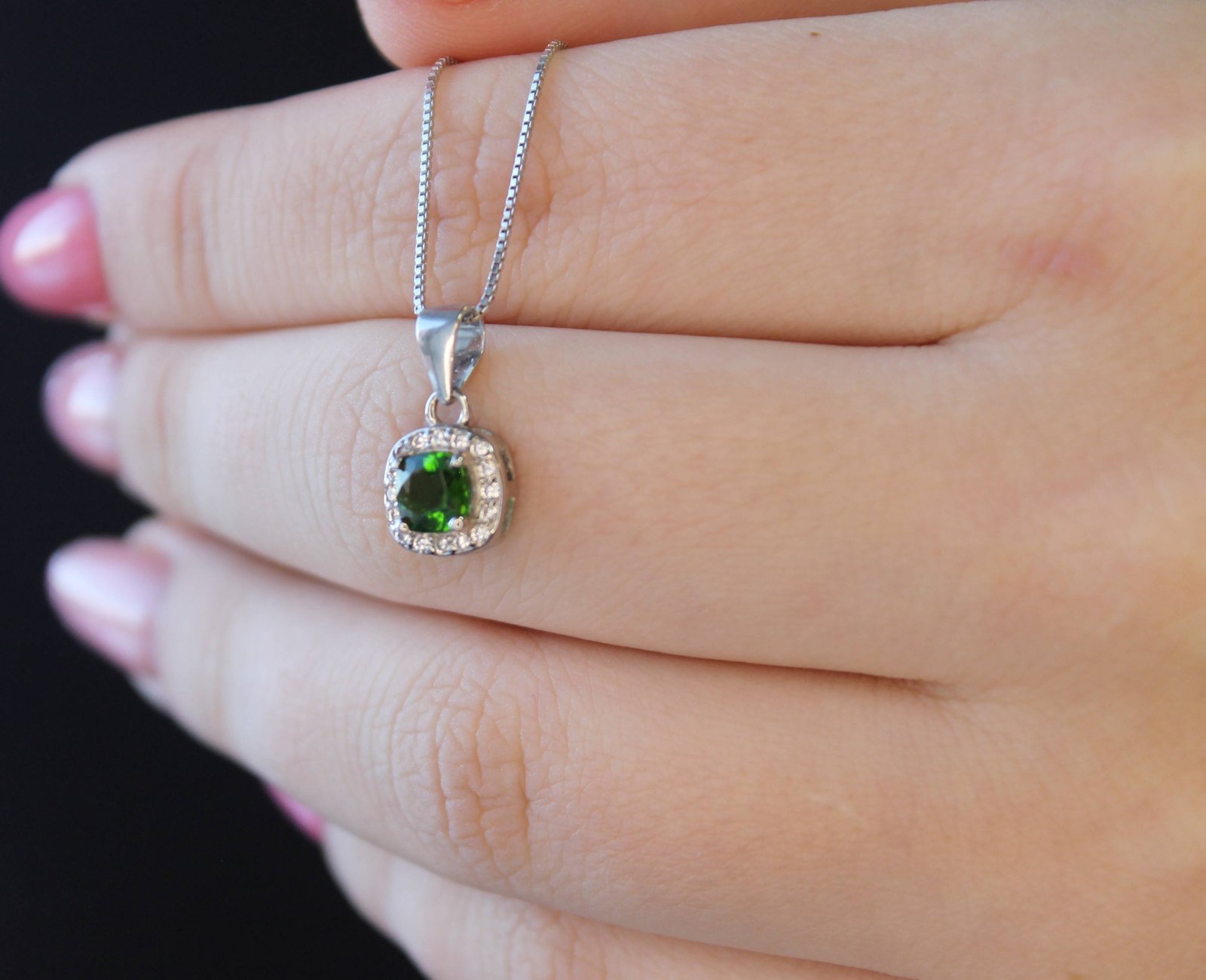 - Stone: Natural Chrome Diopside in a silver setting