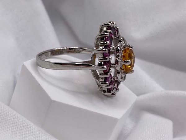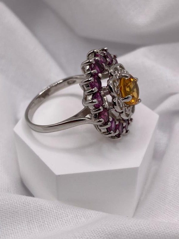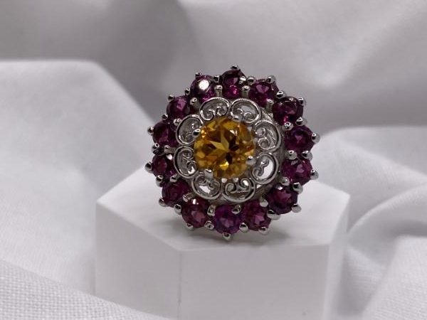 Natural Citrine and Rhodolite Garnet Ring